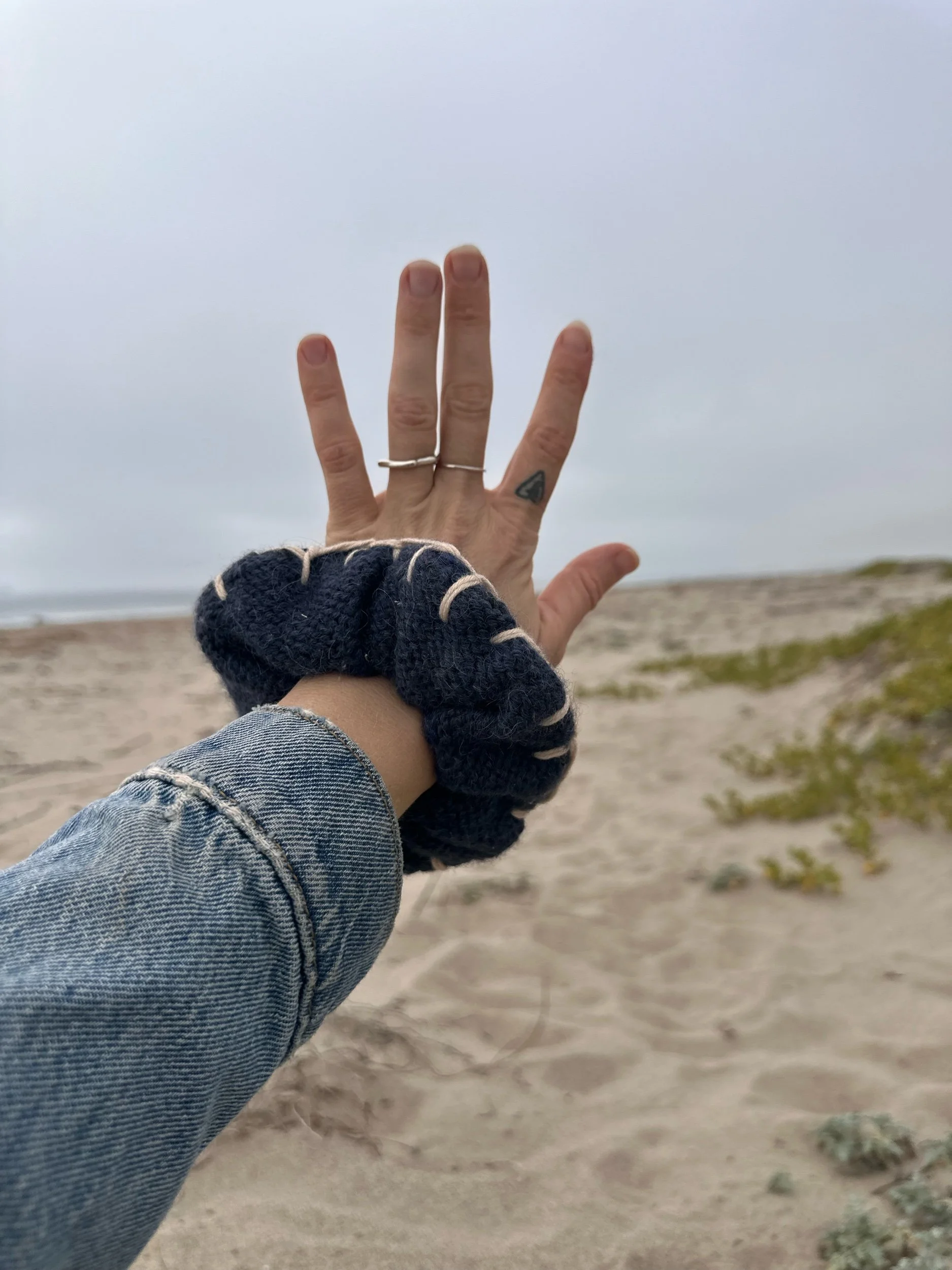 Wool knit scrunchie: alpaca + wool, hand-embroidered for a subtle, cozy detail.