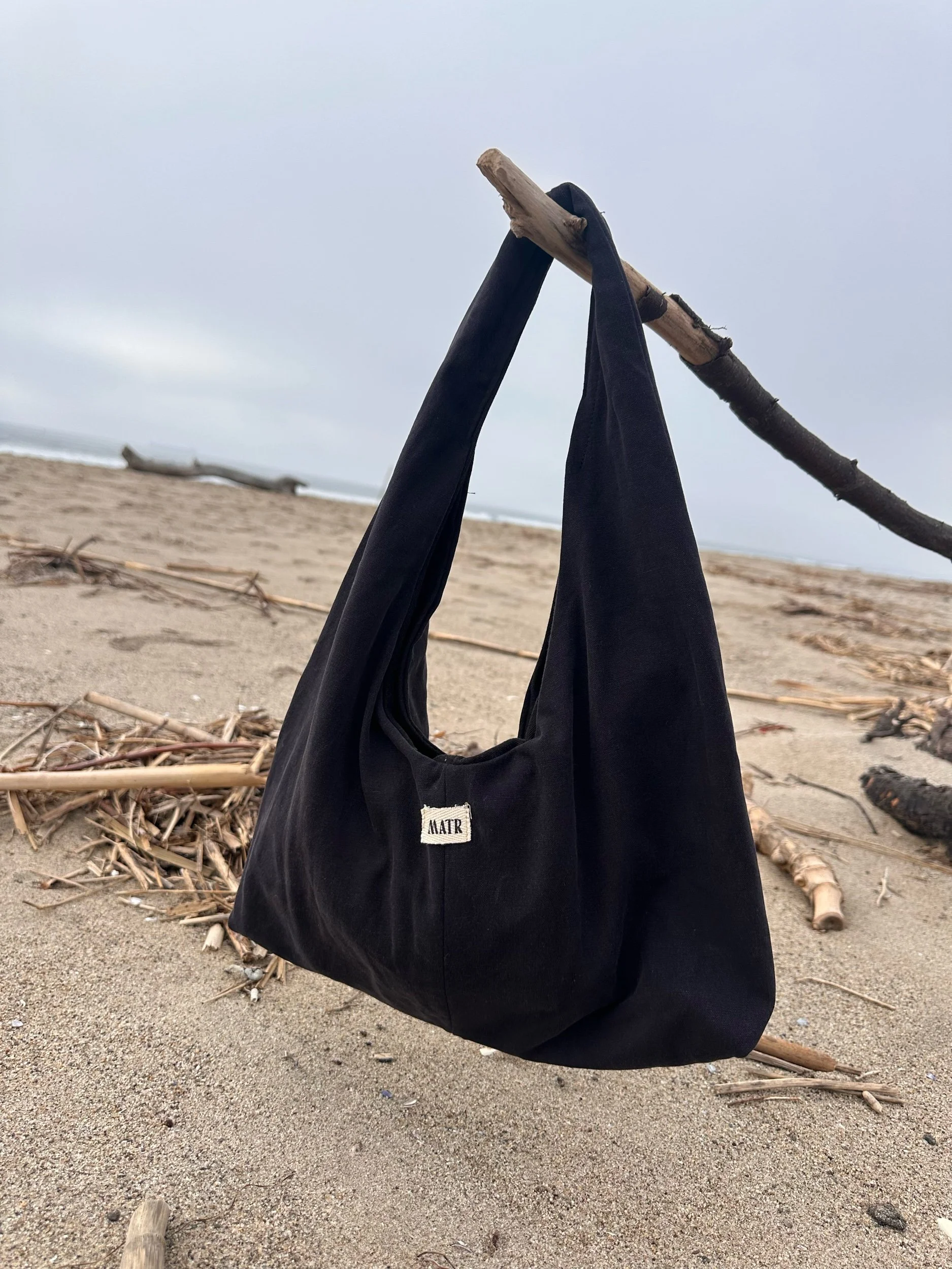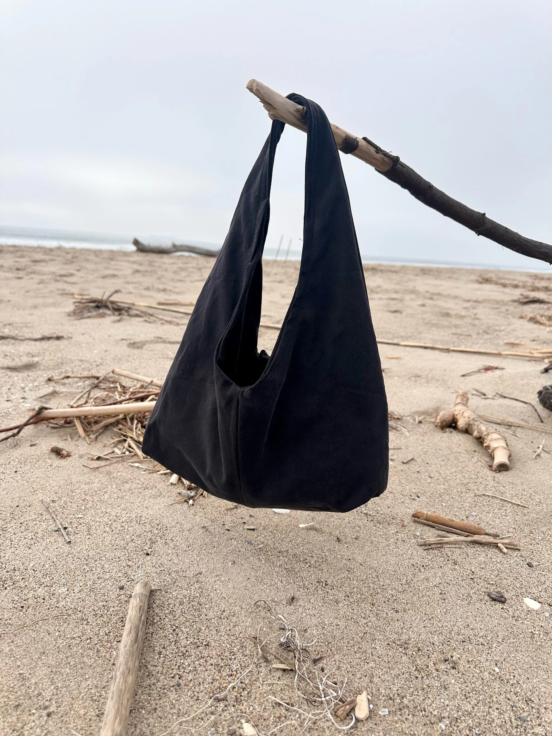 A small, sturdy tote made from upcycled durable pants fabric in classic navy, perfect for carrying your essentials—phone, notebook, pens, and more. The interior is lined with tough cotton, and an exterior cotton label is screen printed in-house at Noble Print House with water-based ink, adding a subtle, unique touch. Features an interior pocket for easy organization. Minimal, functional, and thoughtfully made from repurposed materials.