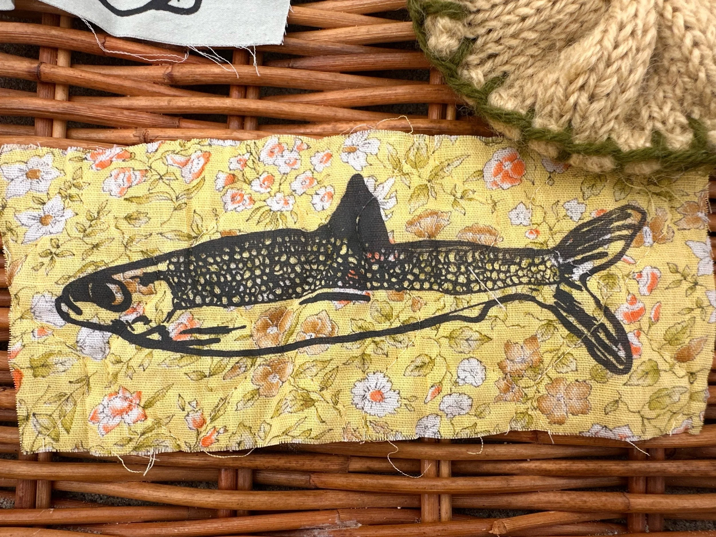 Fish patch: printed on bright vintage bathrobe material for a pop of color and whimsy.