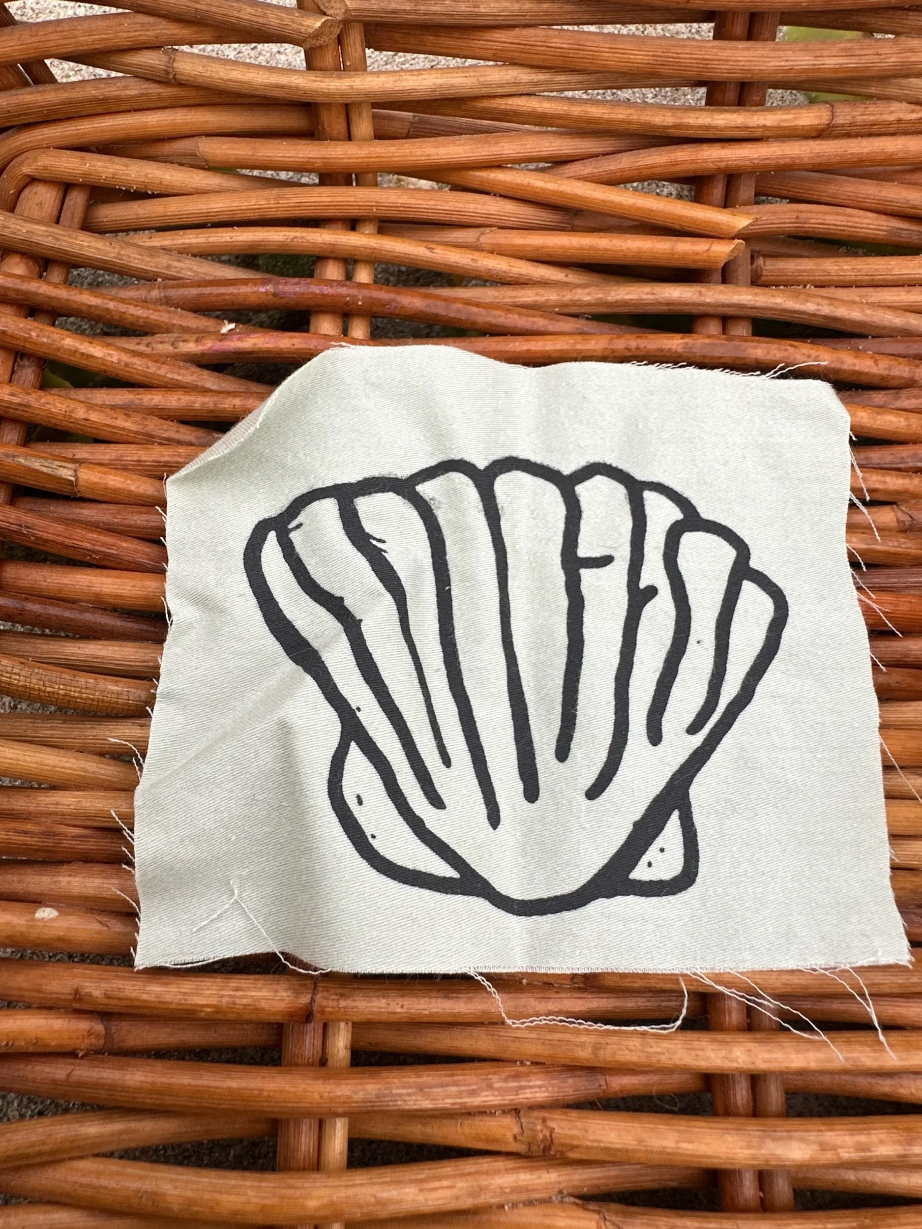 Shell patch: printed in-house on soft green pillowcase material, perfect for adding subtle detail or reinforcement.